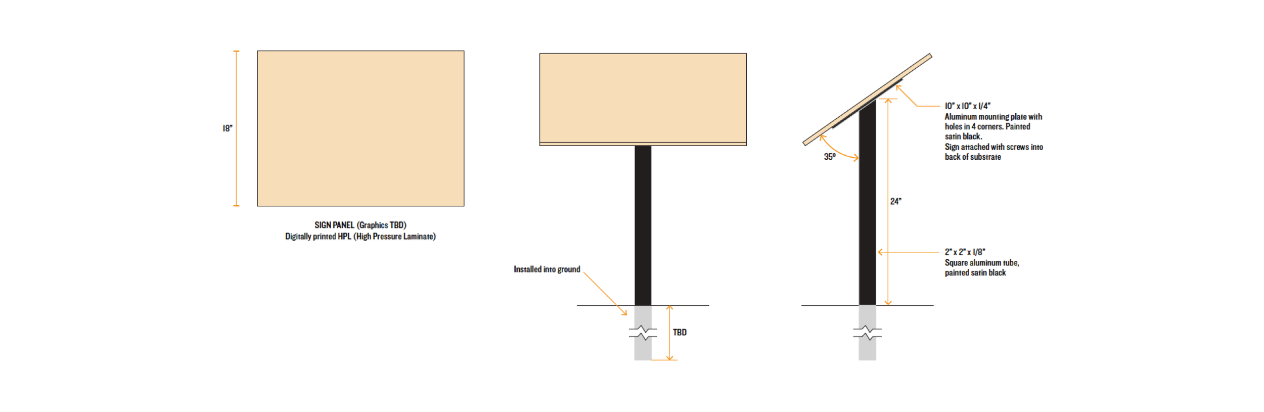 This fully digital exhibition required strategic and eye-catching signage and wayfinding design to entice visitors to access and engage with the works using their smartphones. In addition to the exhibition graphics, Studio Sum designed and managed the custom fabrication of all signage infrastructure throughout the park.